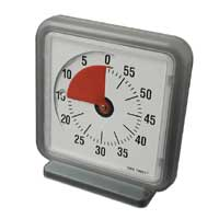 TIME TIMER Hoe maak je lesgeven meer effectief? Met geen ander middel is het begrip verstreken tijd beter uit te leggen dan met de Time Timer (ook wel auti-klok genoemd). Dit leermiddel versterkt de betekenis van verstreken tijd door middel van een aanschouwelijke afbeelding van de resterende tijd. De Time Timer kan gebruikt worden om tijdsgrenzen te stellen (hoekenwerk, time-outs,toetsen), activiteitsduur te meten, plannen van een taak en leerlingen te leren beter gebruik te maken van de beschikbare tijd. De Time Timer is zo gemakkelijk in gebruik dat zelfs kleine kinderen en kinderen met een handicap hun eigen geklokte activiteiten kunnen controleren Hoe werkt de Time Timer ? Instellen doe je door de rode schijf tegen de klok in op de gewenste tijdsduur te plaatsen. De rode schijf verdwijnt kloksgewijs naarmate de tijd verstrijkt. Instellen kan tussen de 1 en 60 minuten.