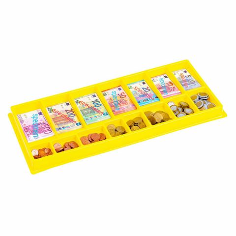 euro box munten en biljetten De sorteer- en opbergbox wordt compleet met munten (160 stuks) èn biljetten (130 stuks) geleverd. De waarde