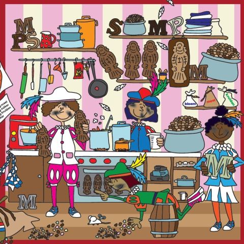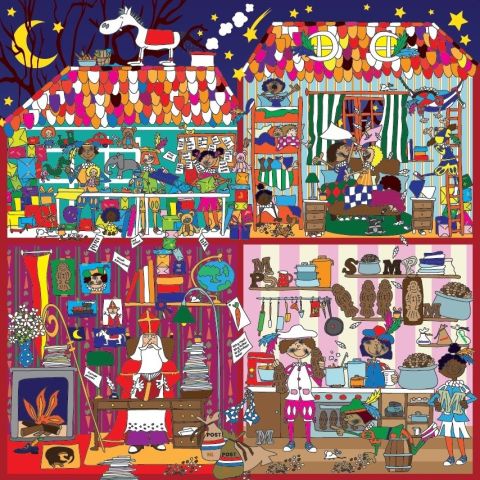 roetveegpietjes, houten groepspuzzel 4 in 1 Coöperatief leren, puzzelen en praatplaat ineen!Groepspuzzel: bijzondere set van 4 houten Sinterklaaspuzzels